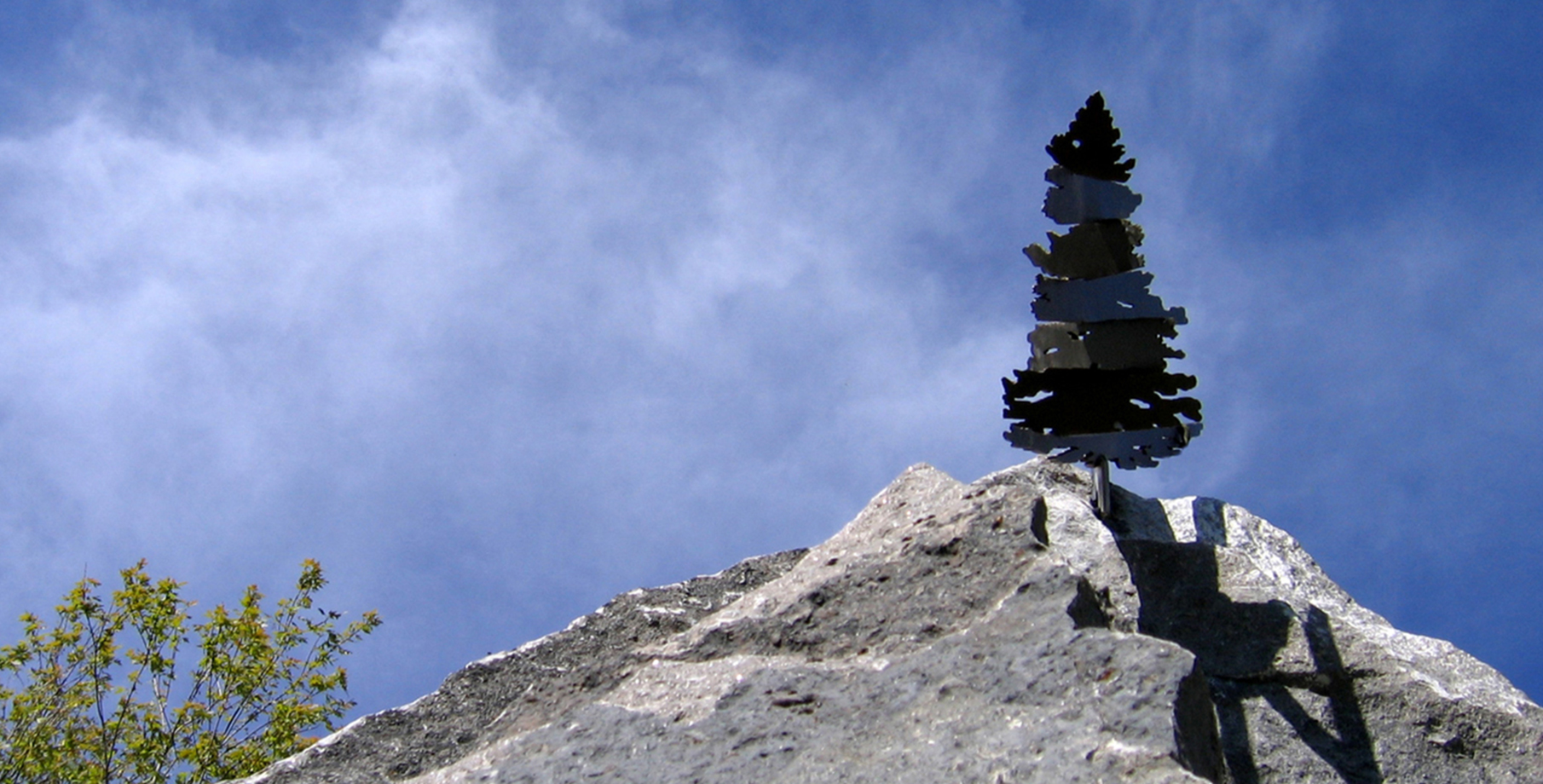 Sculpture d’intégration architecturale commémorative des 150 ans du village de St-Alban au Québec.