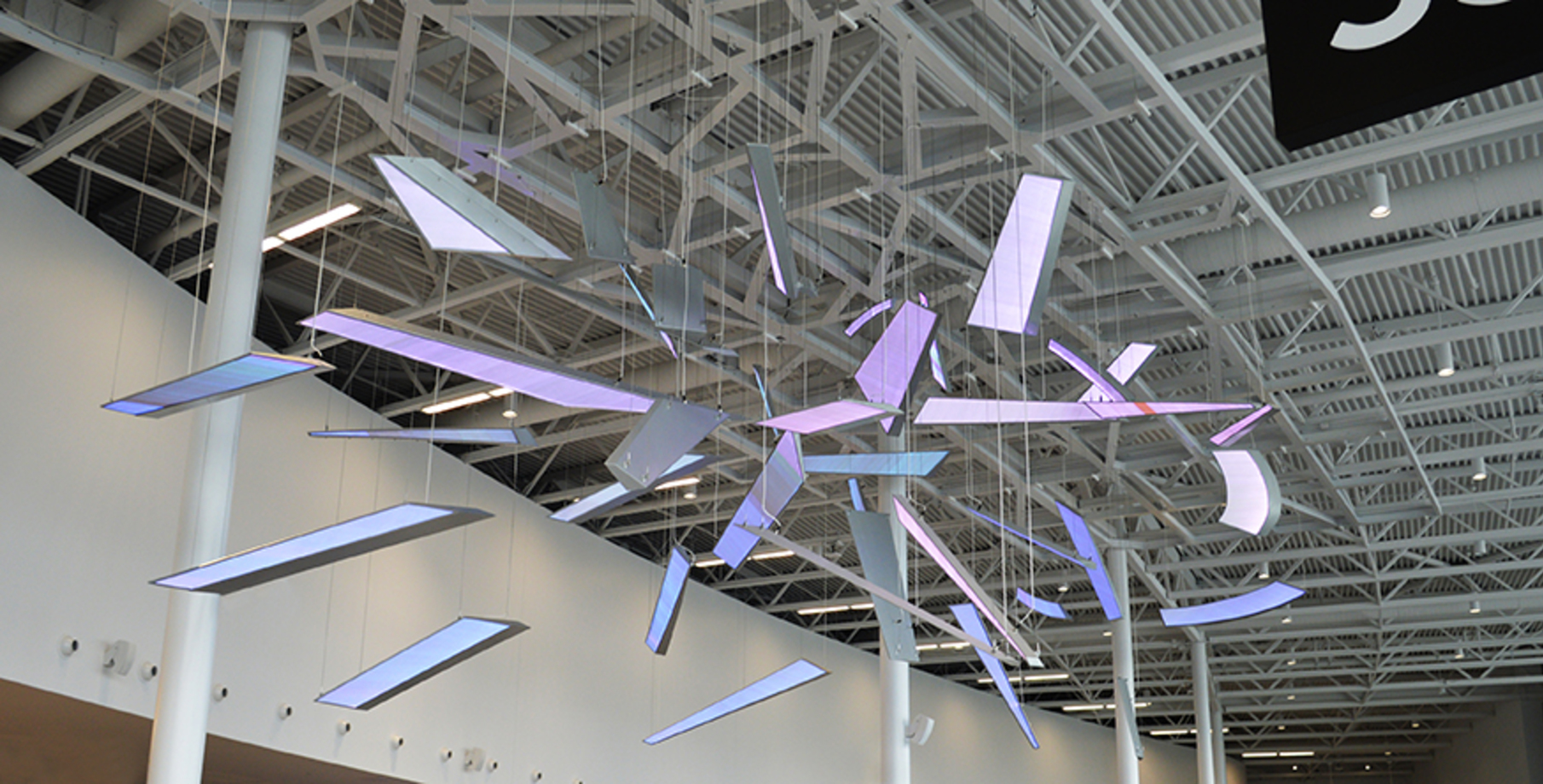 Au total, 40 pièces sont suspendues à un cadrage de soutien en aluminium à l’aide de câblage.
